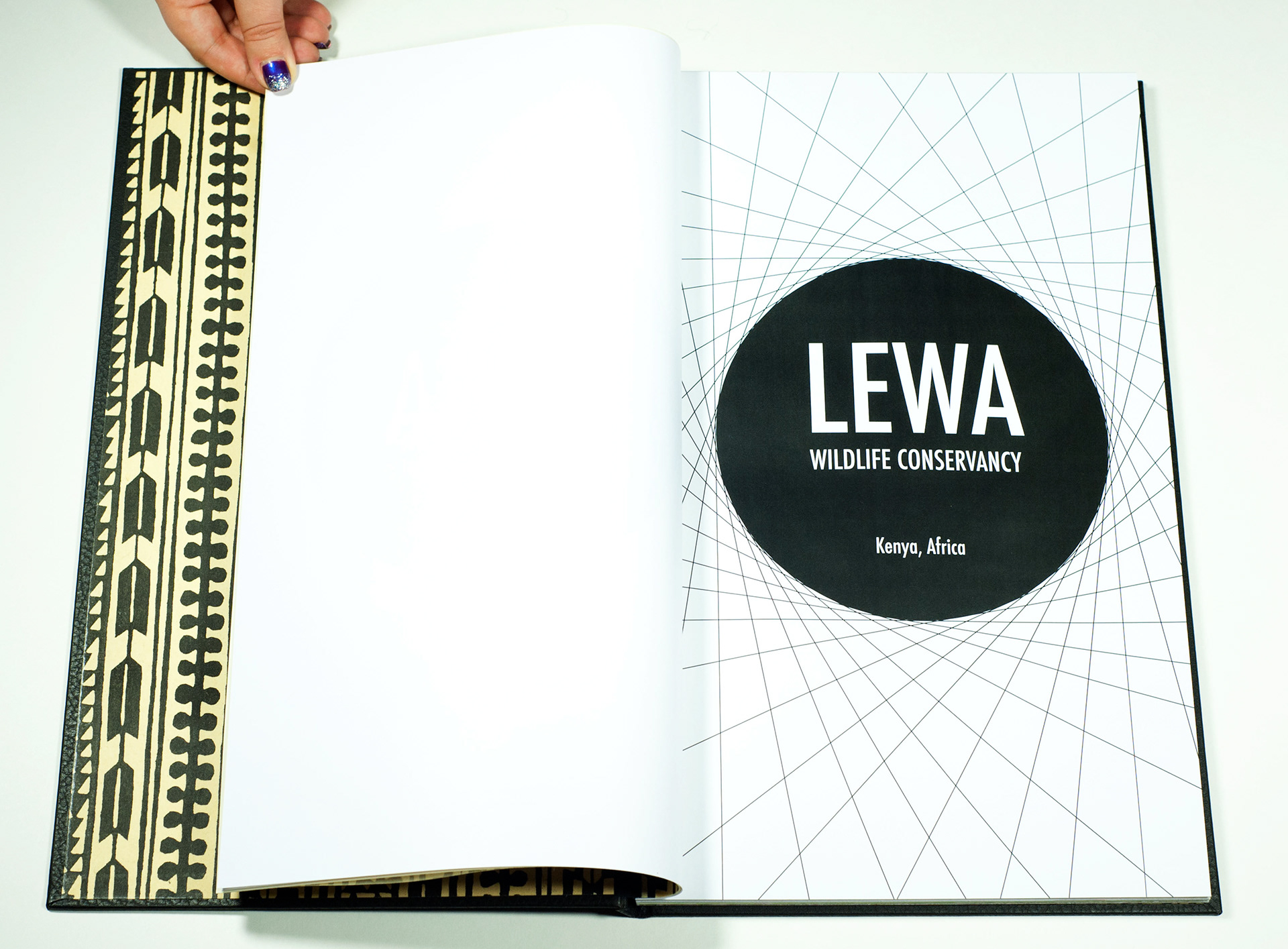 A custom made and bound book highlighting the beauty of the animal kingdom in the Lewa Wildlife Conservancy, located in Kenya, Africa. The images where carefully placed to interact with one another, and bring forth the communication from still images. All images are copyright of Mark Wilson.